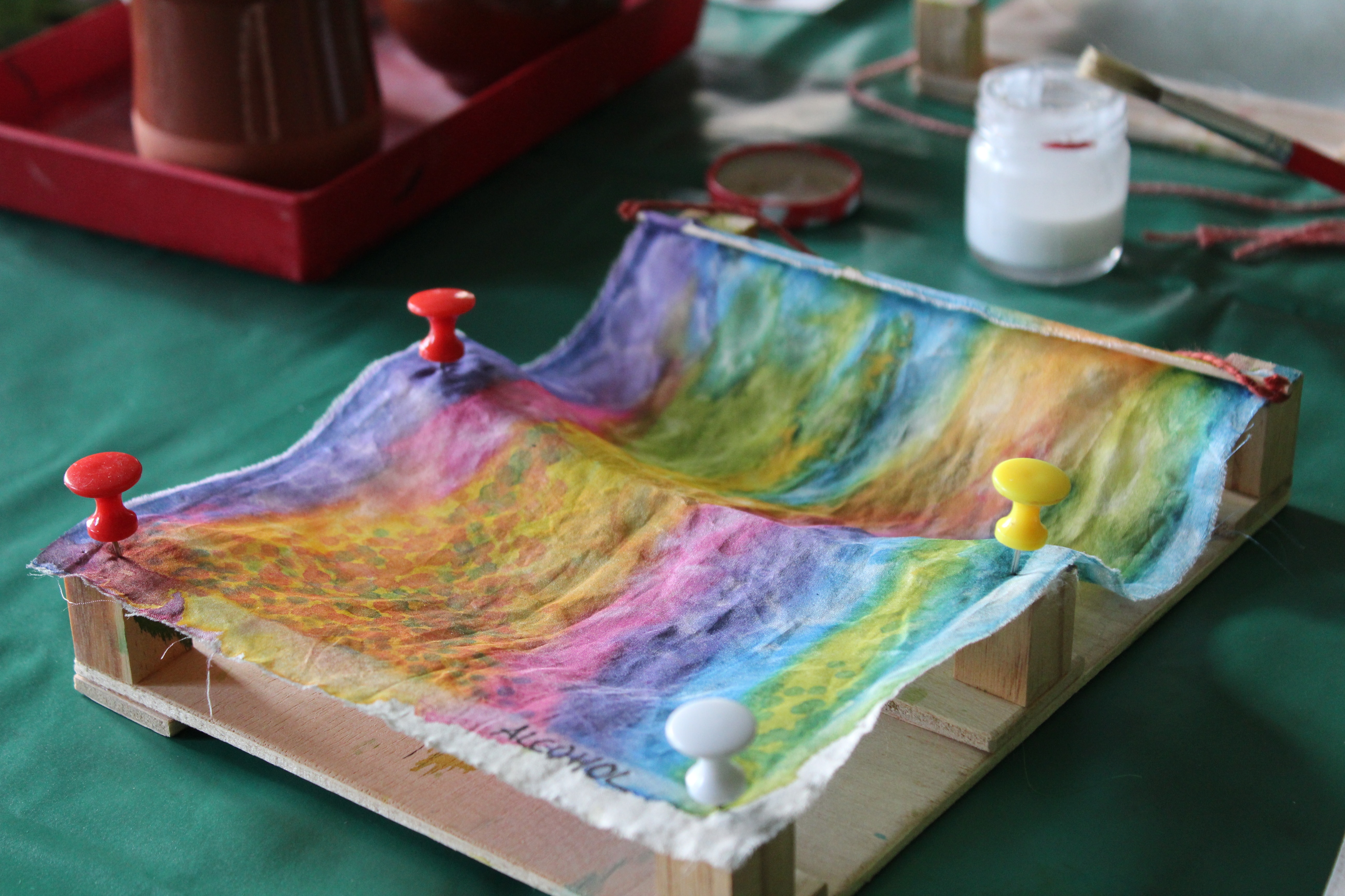 La idea de crear una banderola de seda para identificar vuestro grupo suena genial. Al usar materiales como seda, pinturas textiles, sal, agua y bastoncillos de algodón, podéis experimentar con diferentes texturas y efectos para hacerla única. ¿Cómo os la imagináis? ¿Con colores vivos y formas abstractas? ¿Con un símbolo que represente al grupo? Podéis inspiraros en vuestros intereses comunes, en la naturaleza o en patrones llamativos. Además, al final podéis compartir y consensuar cuál os representa mejor. ¡Seguro que os queda una insignia espectacular! ¿Tenéis ya alguna idea en mente?