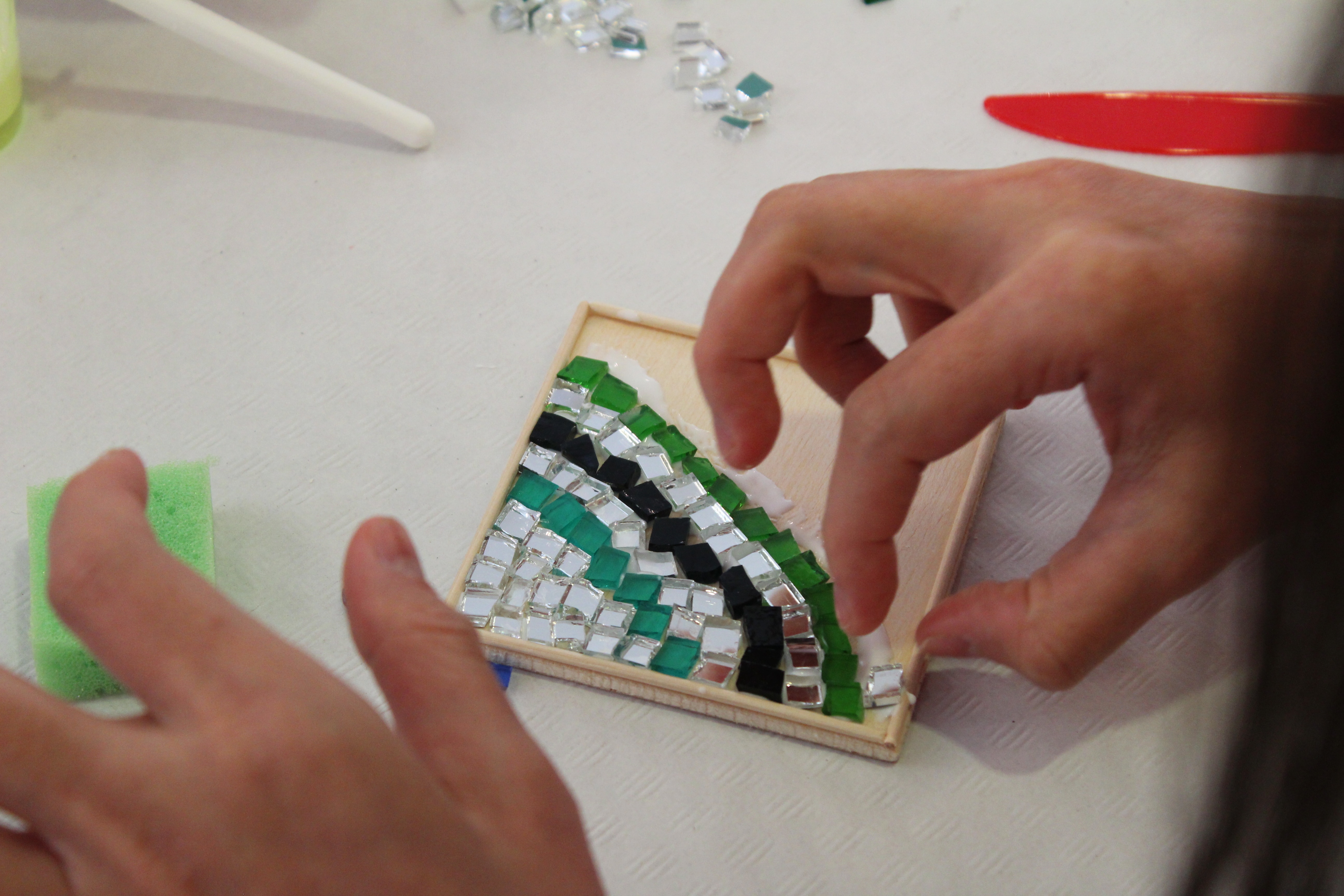 Poned a prueba vuestra capacidad de hacer una creación artística juntando pequeños fragmentos de vidrio de formas irregulares.