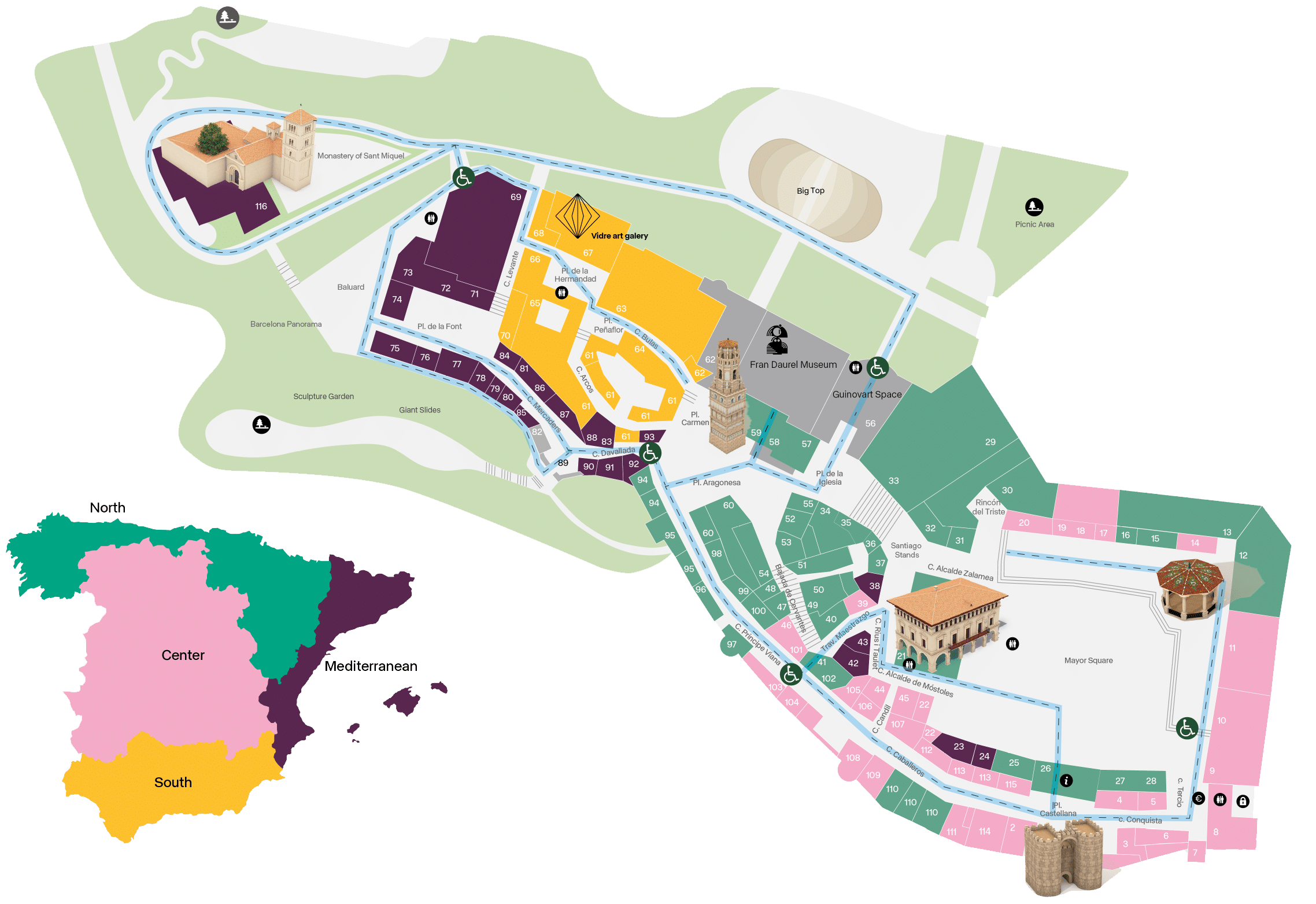 - Bus: Poble Espanyol Stop of lines 13, 23, 150 and X3